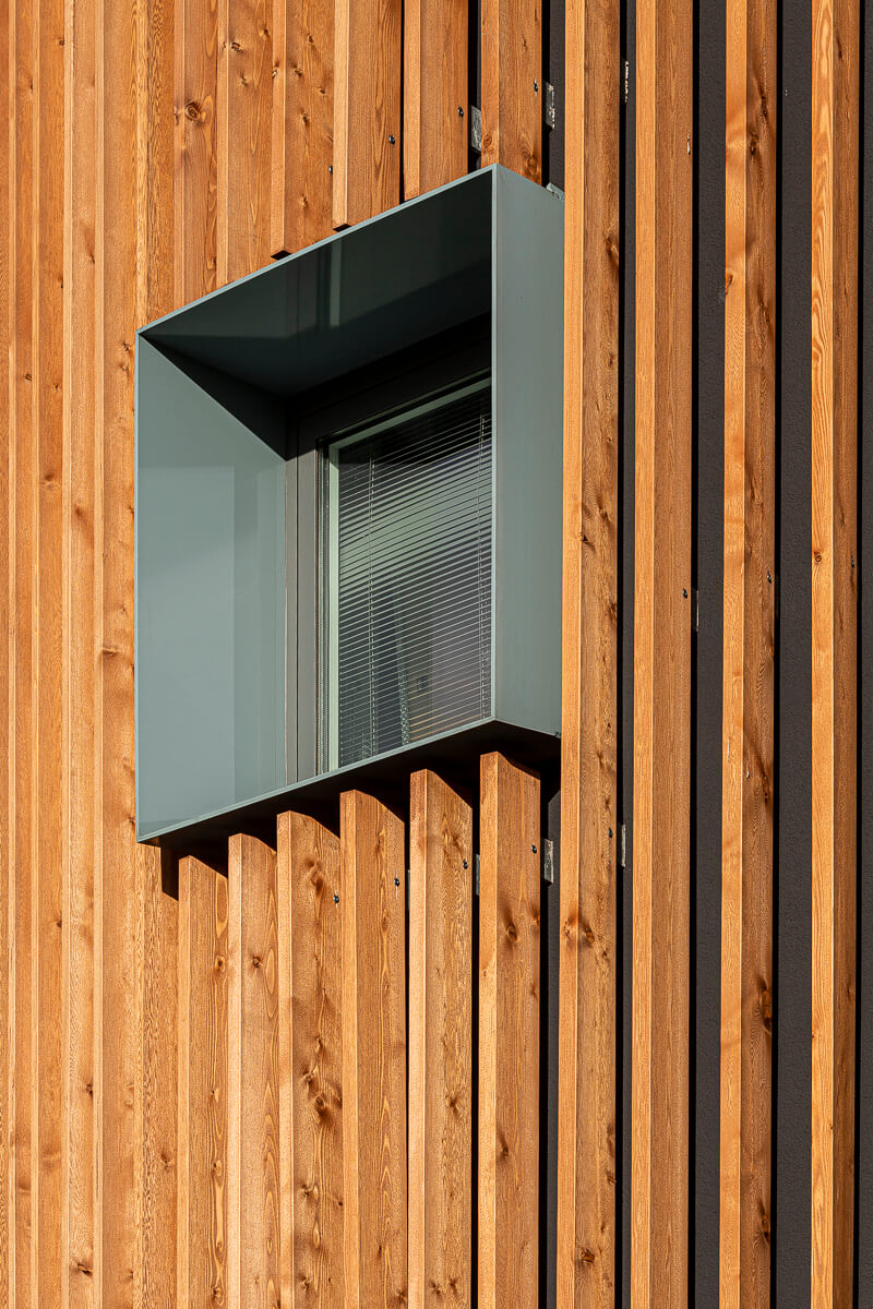 De plus, l’espace généré sous le porte-à-faux du volume en bois se veut « protecteur » et accueille les visiteurs vers l’entrée principale.