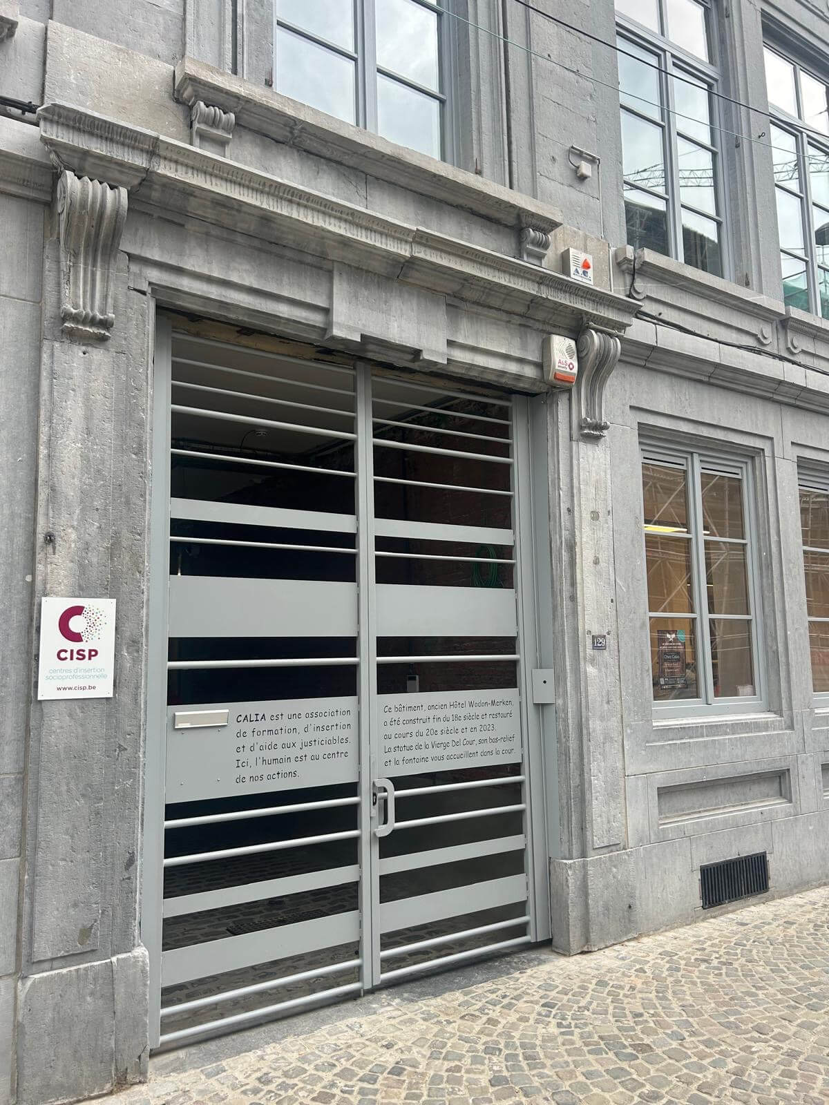 Les deux entrées, Rue des brasseurs et En Féronstrée, seront prévues avec des grilles de sécurisation qui permettront de gérer le flux du public au sein du bâtiment et de sa cour intérieure. Ces grilles seront contemporaines, racontant l’histoire de la Vierge Delcour, permettant un apport de lumière en toutes circonstances et invitant le touriste à pénétrer dans la cour en journée.